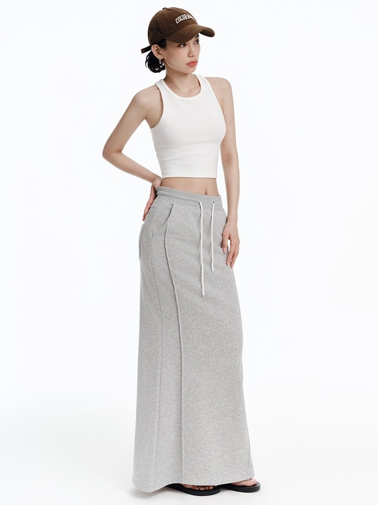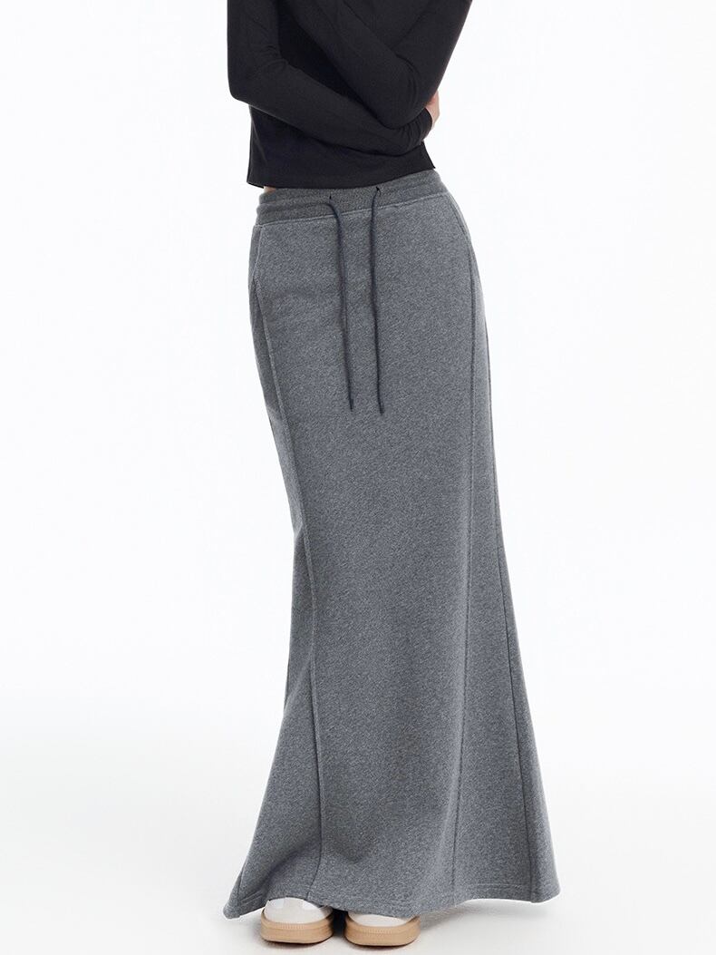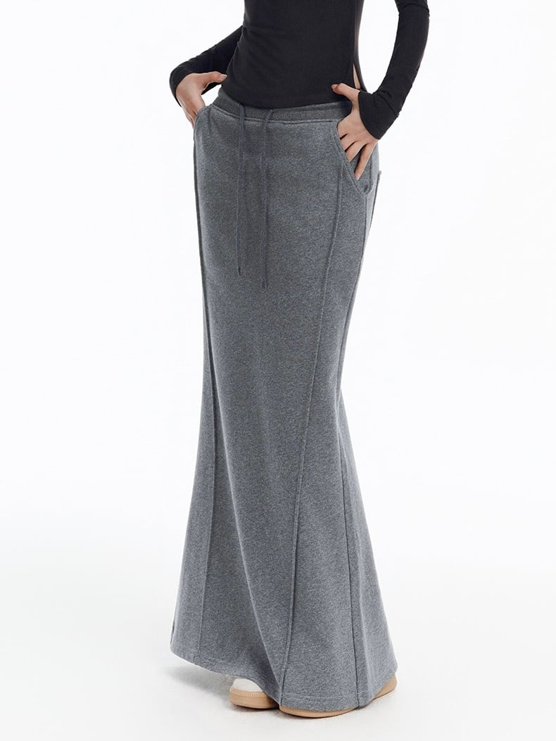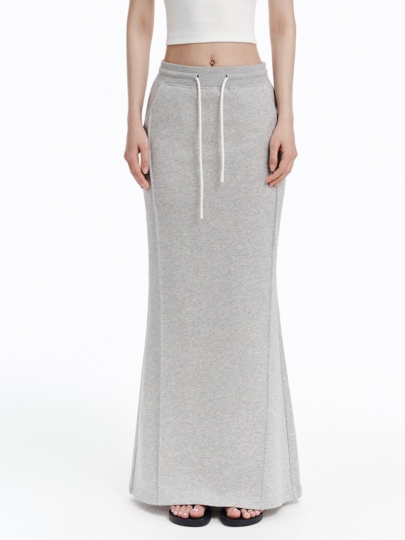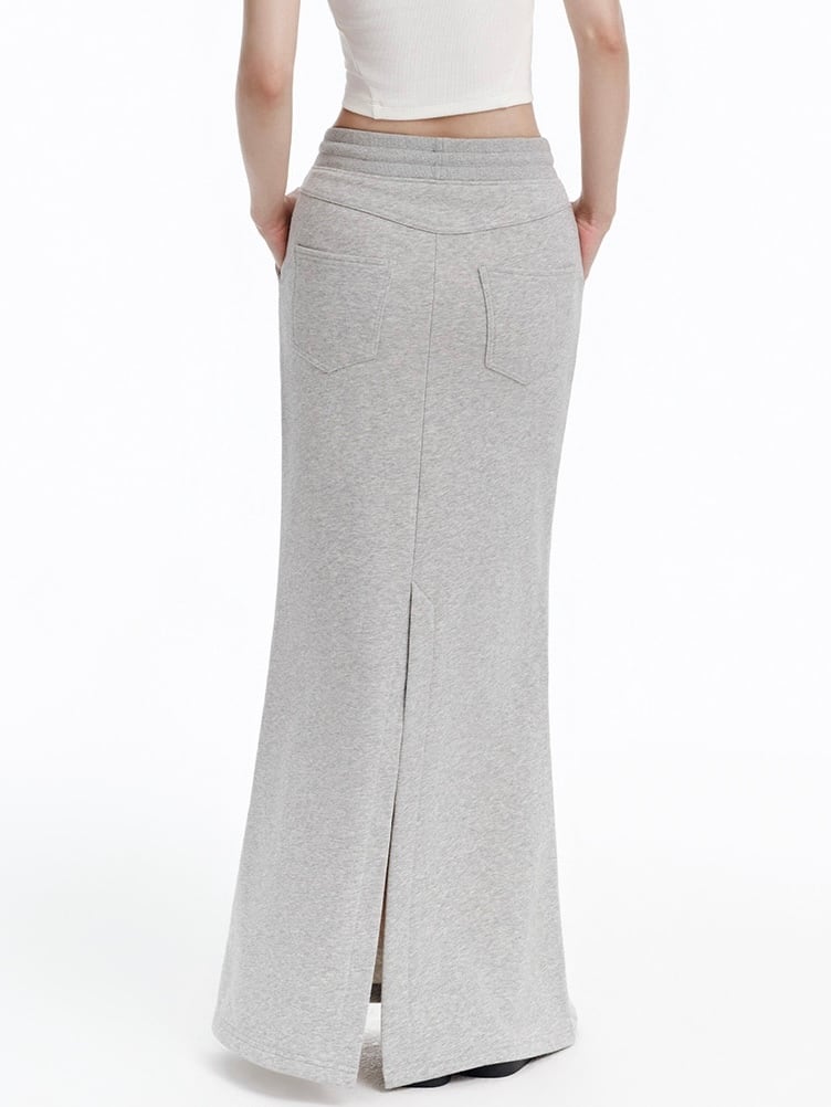 バックにスリットが入っているのでロング丈でも歩きやすいです。ドローストリングで、ウエストのサイズ調整が簡単にできます。スウェット素材で、柔らかくてリラックス感満点です。おしゃれだけじゃなく、ちょっとした小物を入れられるから便利です。シンプルなデザインだから、カジュアルからキレイめまで幅広く合わせやすい万能アイテムです。