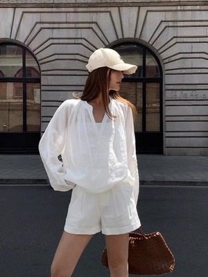 軽やかな素材を使用し、通気性抜群で蒸れにくい快適な着心地を叶えたショートパンツです。ハイウエスト&タック入りのデザインが脚長効果を演出し、すっきりとした大人のカジュアルなスタイルを実現します。合わせるトップスを選ばないシンプルさで、リゾートにもタウンにも大活躍です。