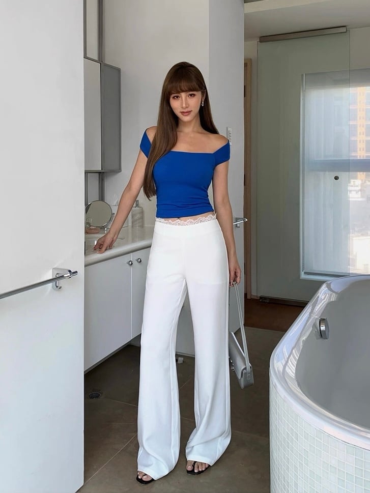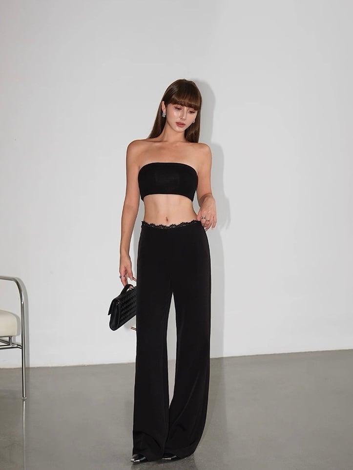 ウエスト部分にあしらわれたレースディテールが、シンプルながらも女性らしい上品さを際立たせる1枚です。ハイウエストデザインで、脚長効果が期待でき、スタイルアップを叶えながらも、ワイドなシルエットで動きやすさも抜群です。ややとろみのある生地感がエレガントに揺れて、オフィスからデートまで活躍間違いなし。トップスをインして着ると、レースの美しさが際立ち、コーデに抜け感と甘さをプラスしてくれます。