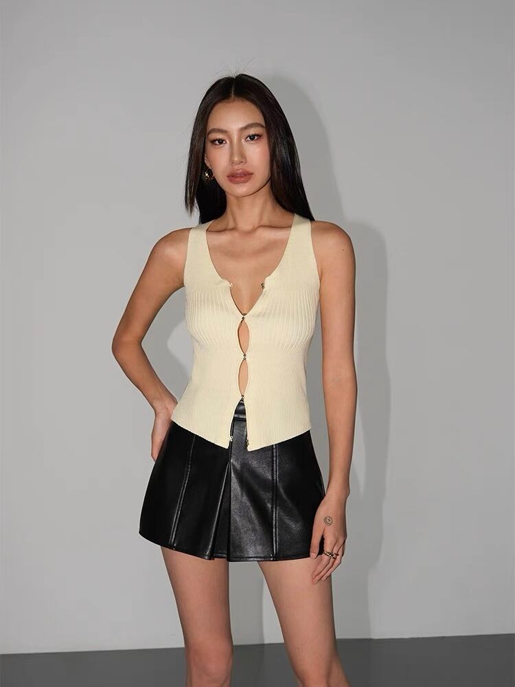 フロントに施された複数のリングホールデザインが目を惹く、トレンド感満載の一枚です。大胆なカットアウトがヘルシーな肌見せを叶え、女性らしい魅力を引き立てます。柔らかな素材を使用しており、ボディラインに沿うシルエットでスタイルアップ効果も抜群です。程よい伸縮性とフィット感があり、着心地も快適です。ミニスカートやパンツ、デニムなど、どんなボトムスとも合わせやすく、モードからカジュアルまで幅広いスタイルにマッチします。ナイトアウトにもデイリーにも映える主役級アイテムです。