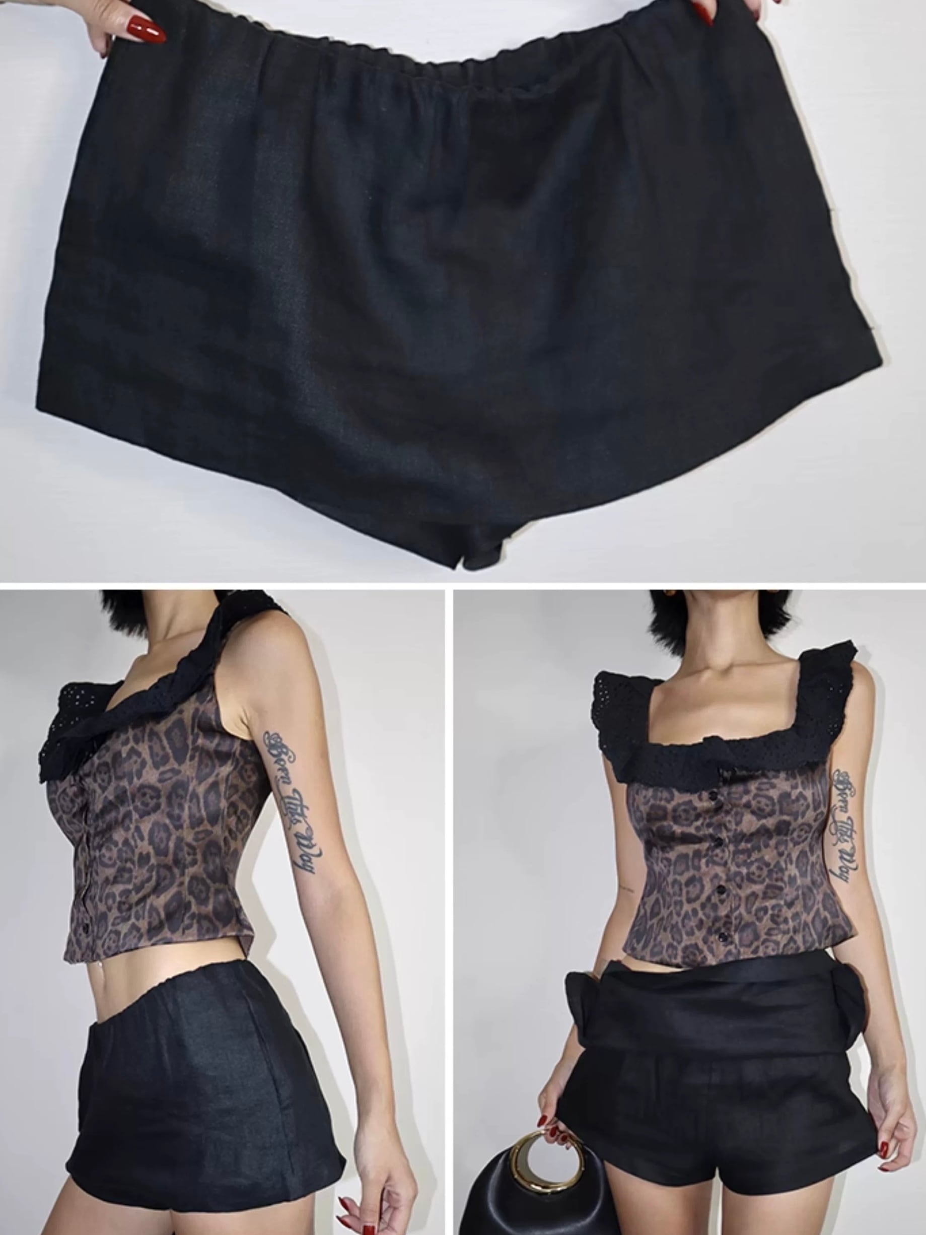 大胆な肌見せが叶うハイウエストショートパンツ。