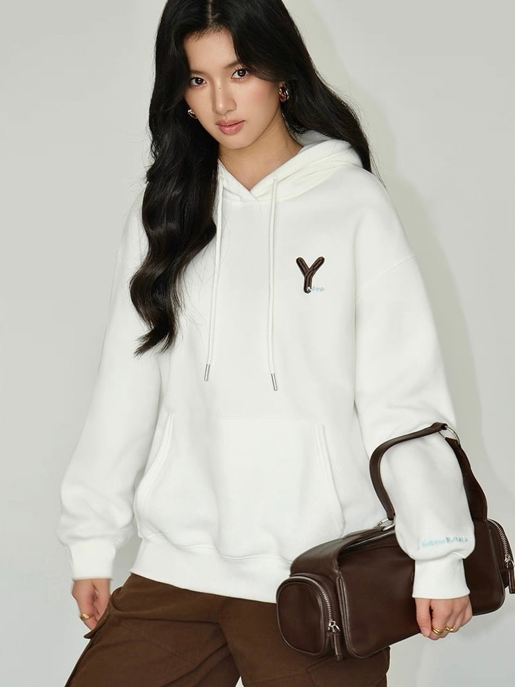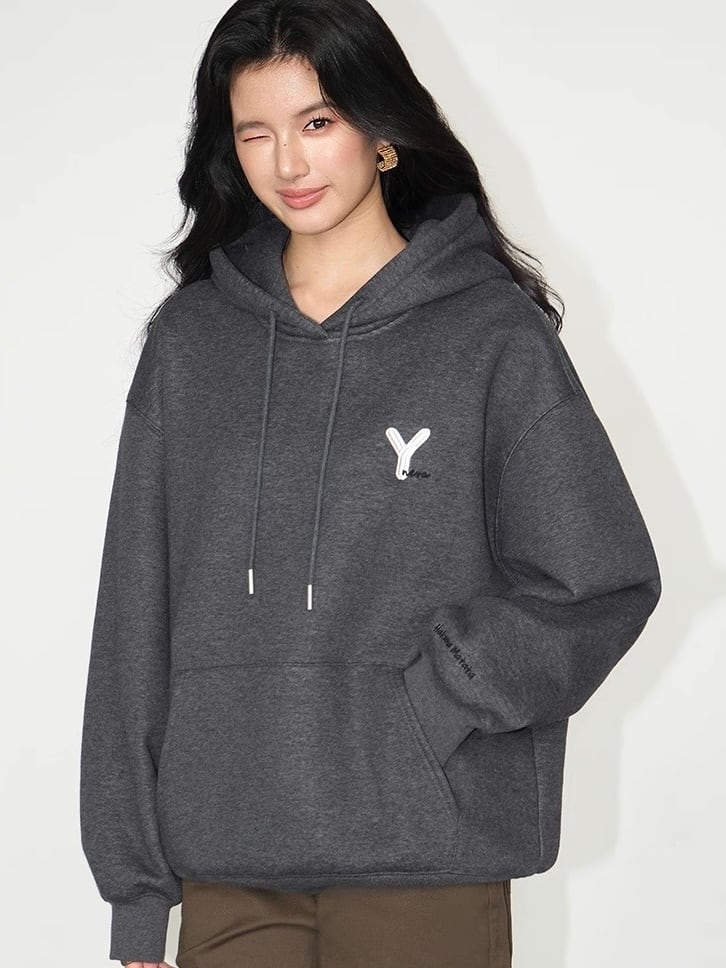 胸元に施された小さな刺繍ロゴがアクセントになる、シンプルで着回し力の高いオーバーサイズフーディーです。ダボッとしすぎない絶妙なルーズシルエットで、体型カバーしつつも重たく見えないバランスです。裏側には柔らかな裏地を使用しており、肌当たりが優しく、気温の低い日でも暖かく過ごせます。どんなシーンにも自然と馴染むミニマルデザインで、一枚でストリートっぽい雰囲気を演出できます。