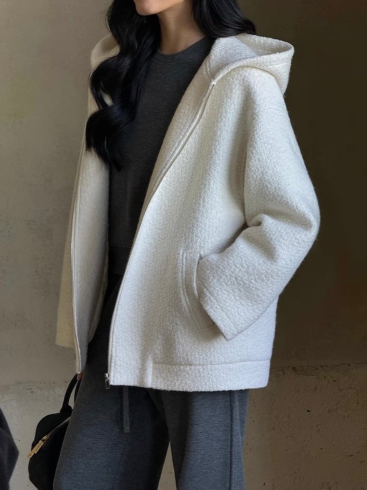 ふんわりとした立体感と柔らかい手触りが魅力の「ループヤーン素材」を使用し、見た目以上に軽く着られる暖かなアウターです。ゆったりとした肩落ちデザインと幅広いシルエットで、ニットやスウェットの上からも無理なく羽織れるリラックス感のある着心地です。どんなスタイルにも合わせやすいニュアンスカラー展開で、長く使える1着です。