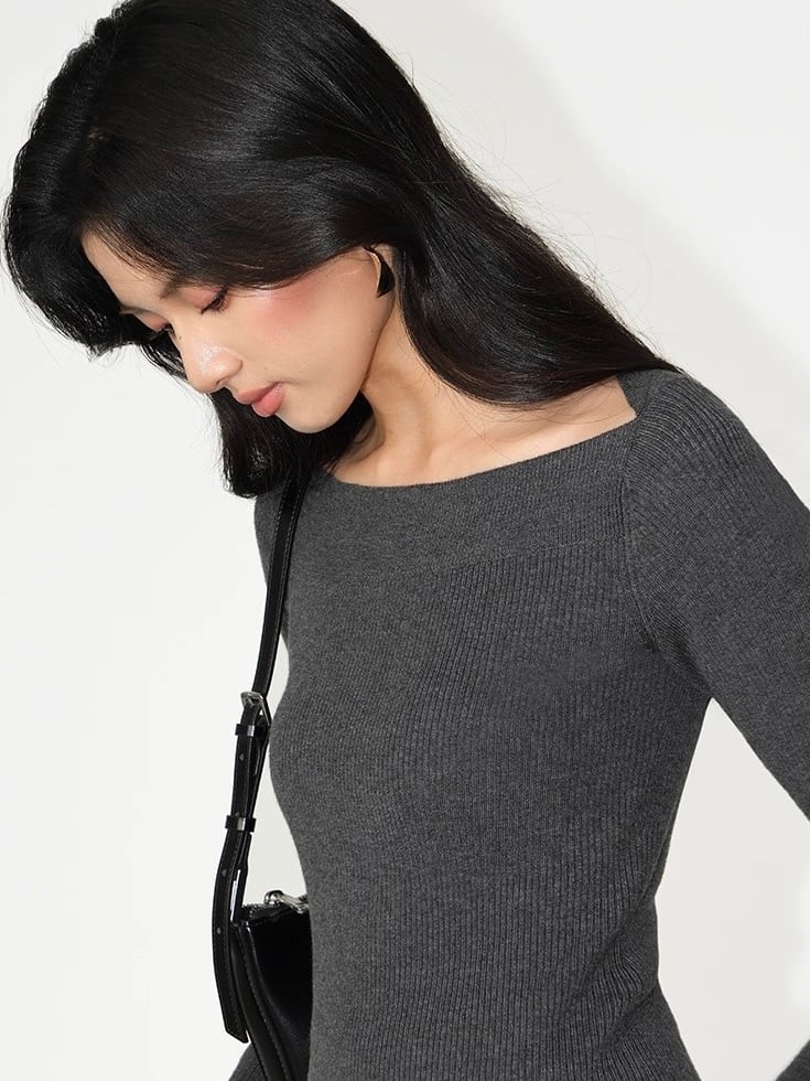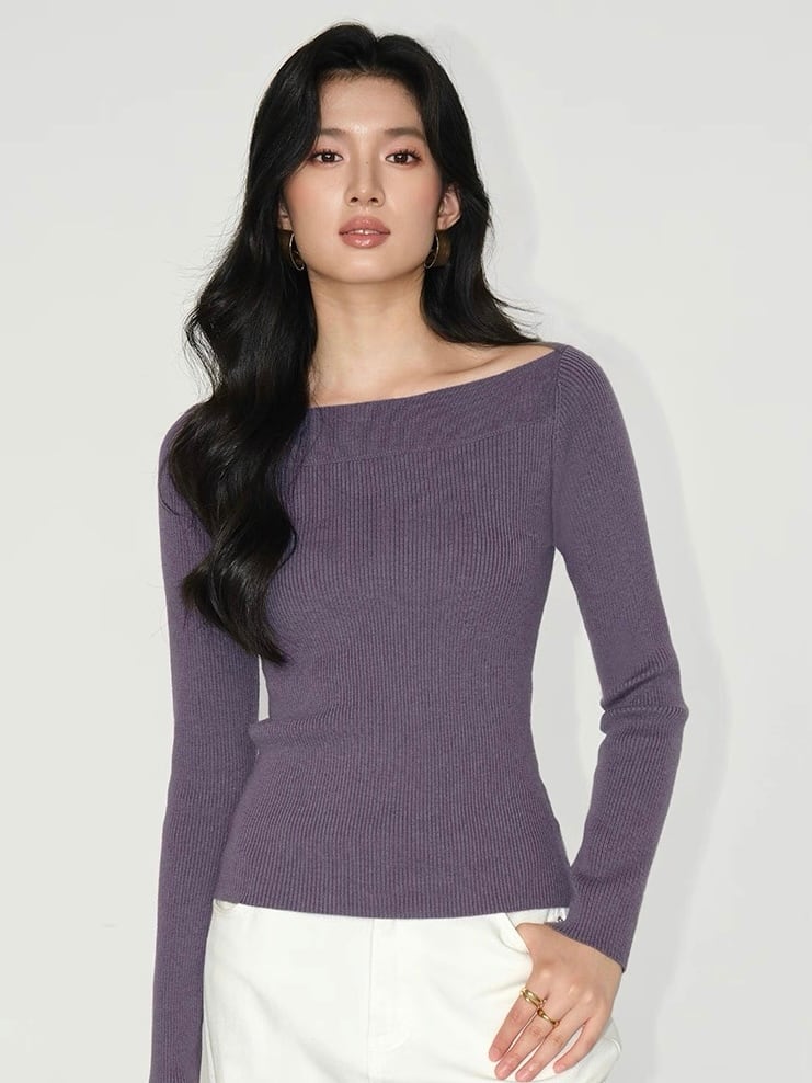 デコルテを美しく見せるワイドボートネックデザインで、首元・肩ラインに自然な抜け感をつくり、女性らしさを上品に引き立てます。身体に沿いすぎない絶妙なフィット感で、程よい伸縮性がありつつ締め付け感が少なく、長時間着用しても快適です。厚すぎず薄すぎない生地で、インナーとしても一枚着としても使える万能さが魅力です。