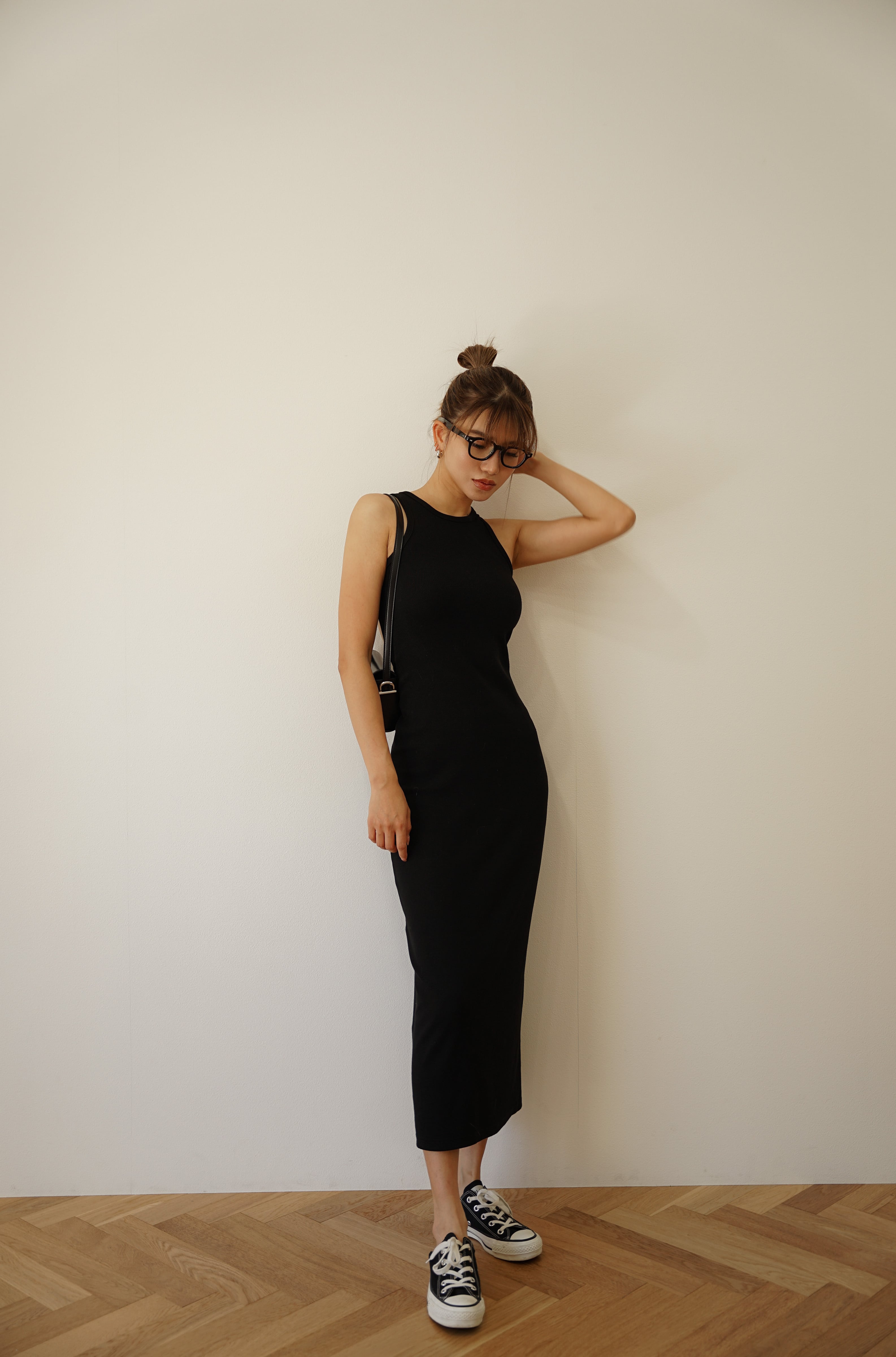 ・バックオープンがスタイリッシュでセクシーなワンピース。ストレッチ素材で動きやすく、着心地も抜群。