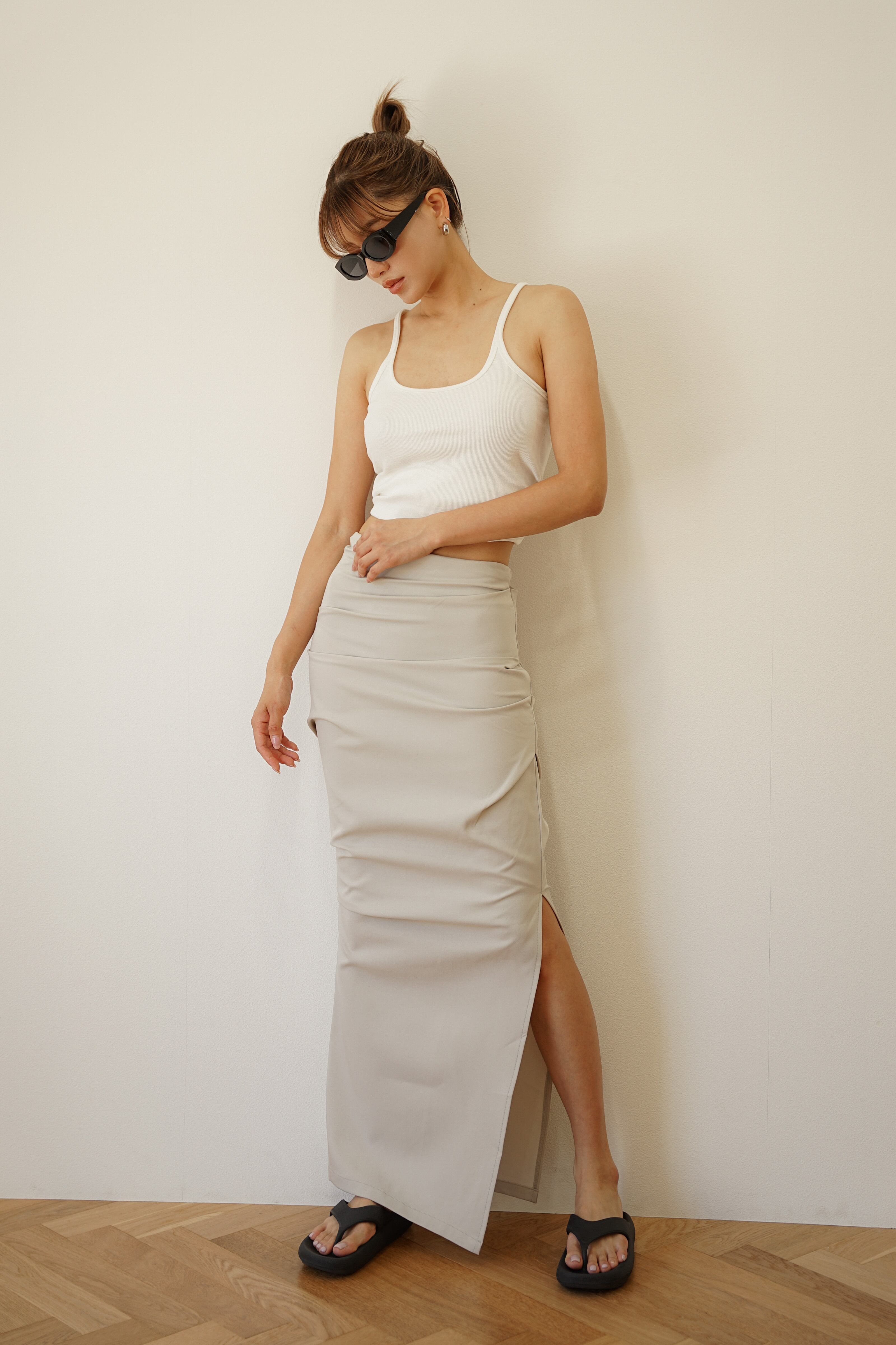 ・大胆にサイドスリットを入れたロングスカート。一枚で存在感のあるコーディネートに仕上がります。