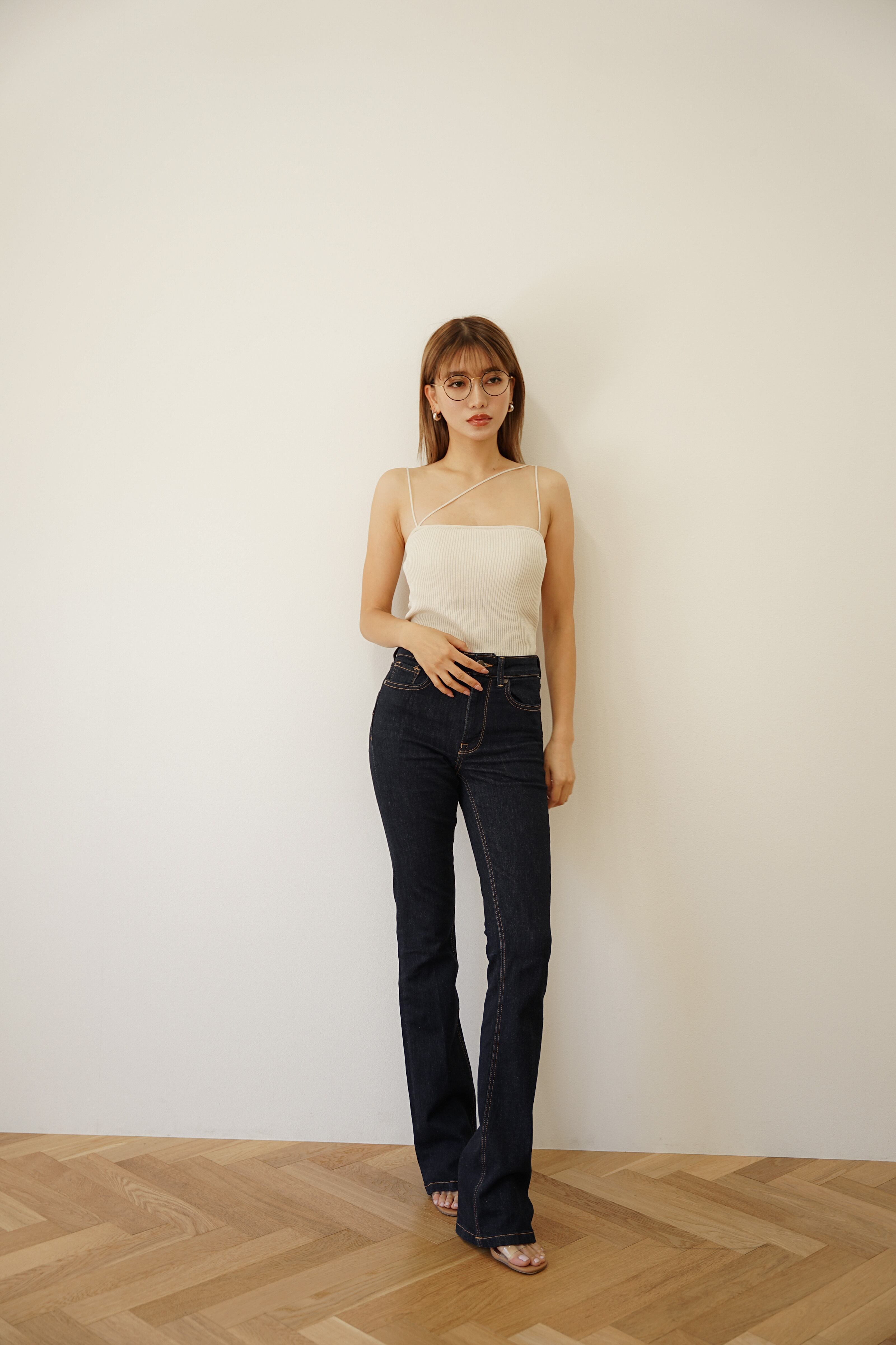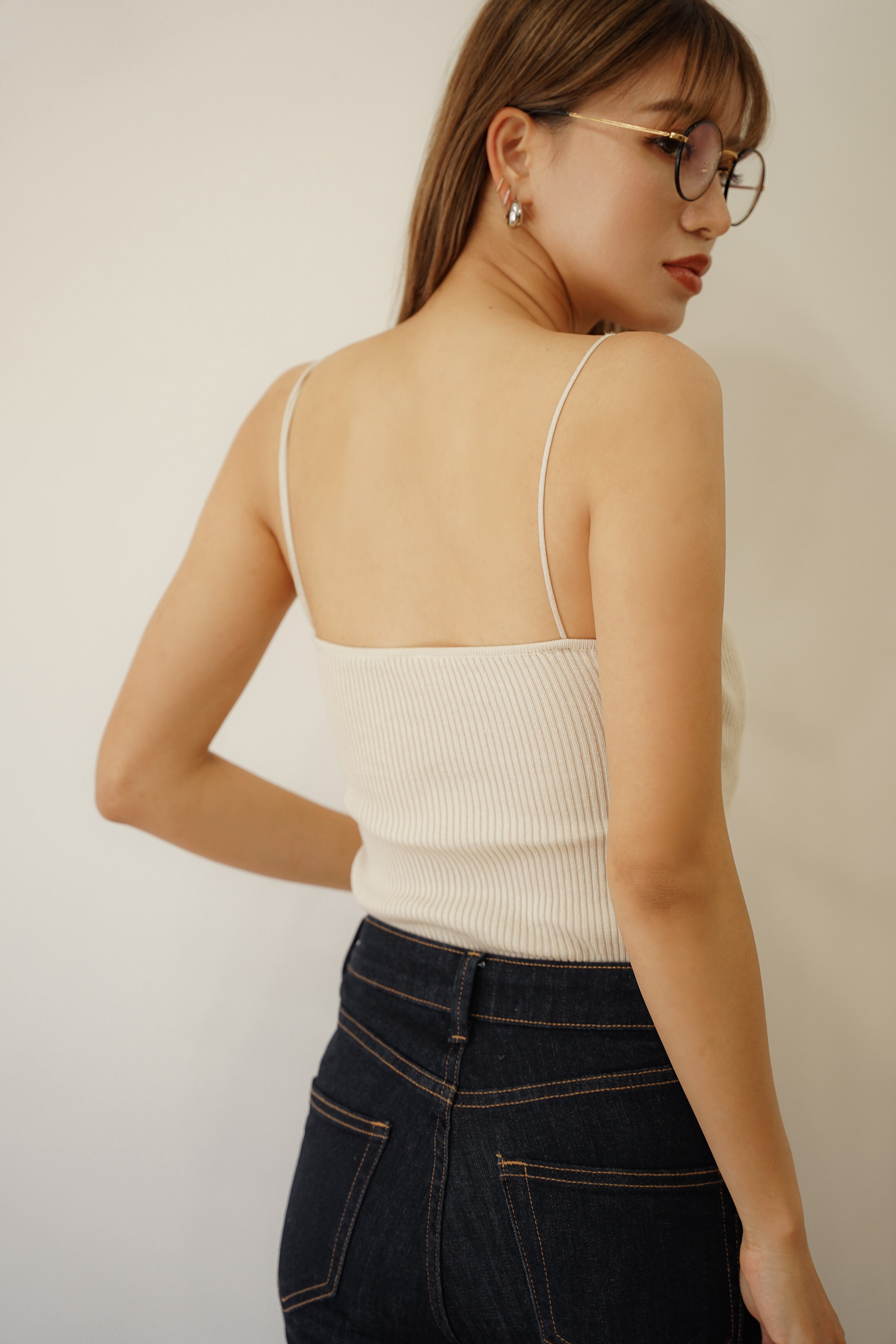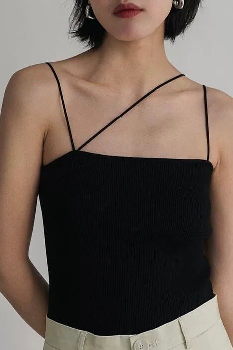 ・細いアシンメトリーストラップがアクセントのキャミソール。