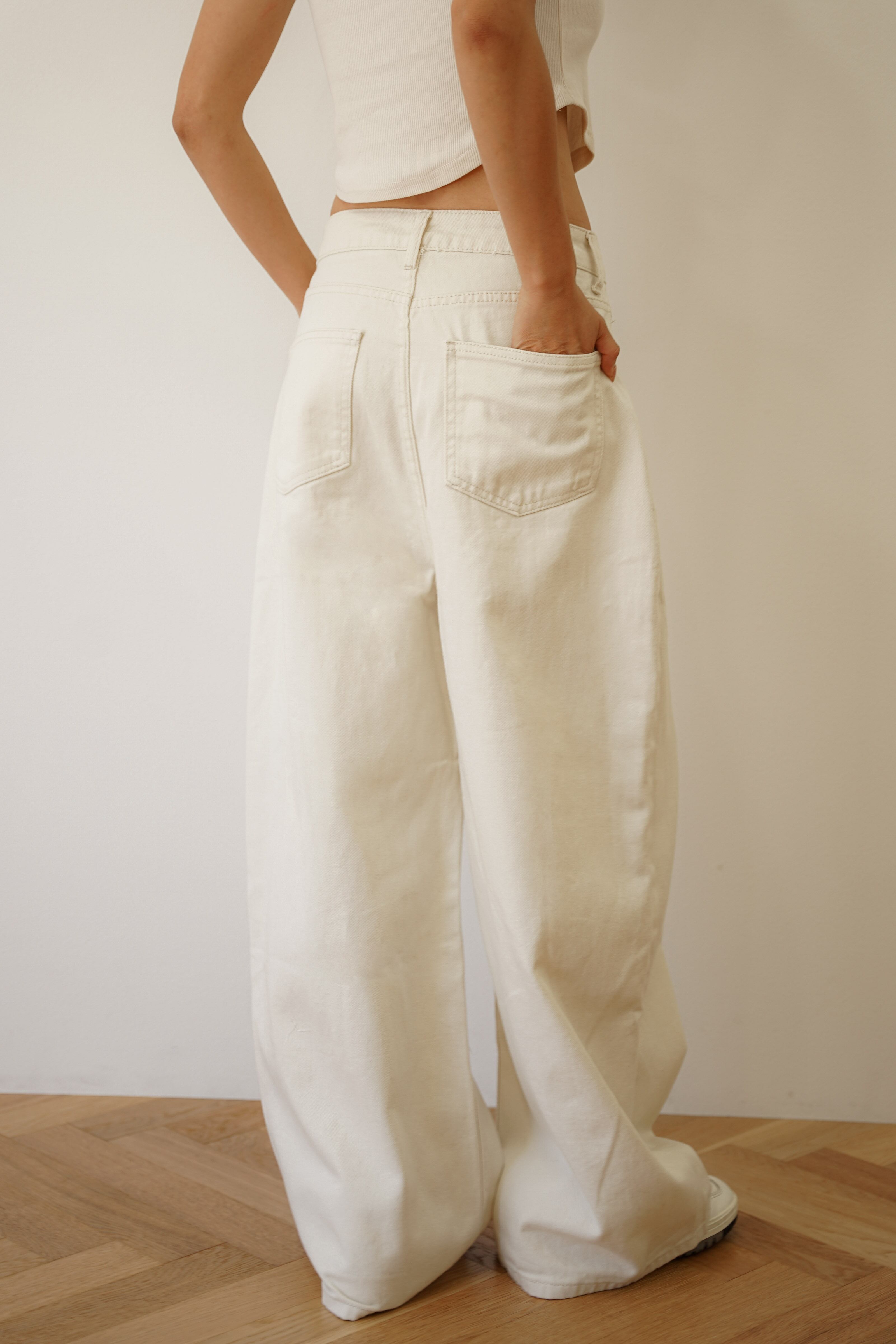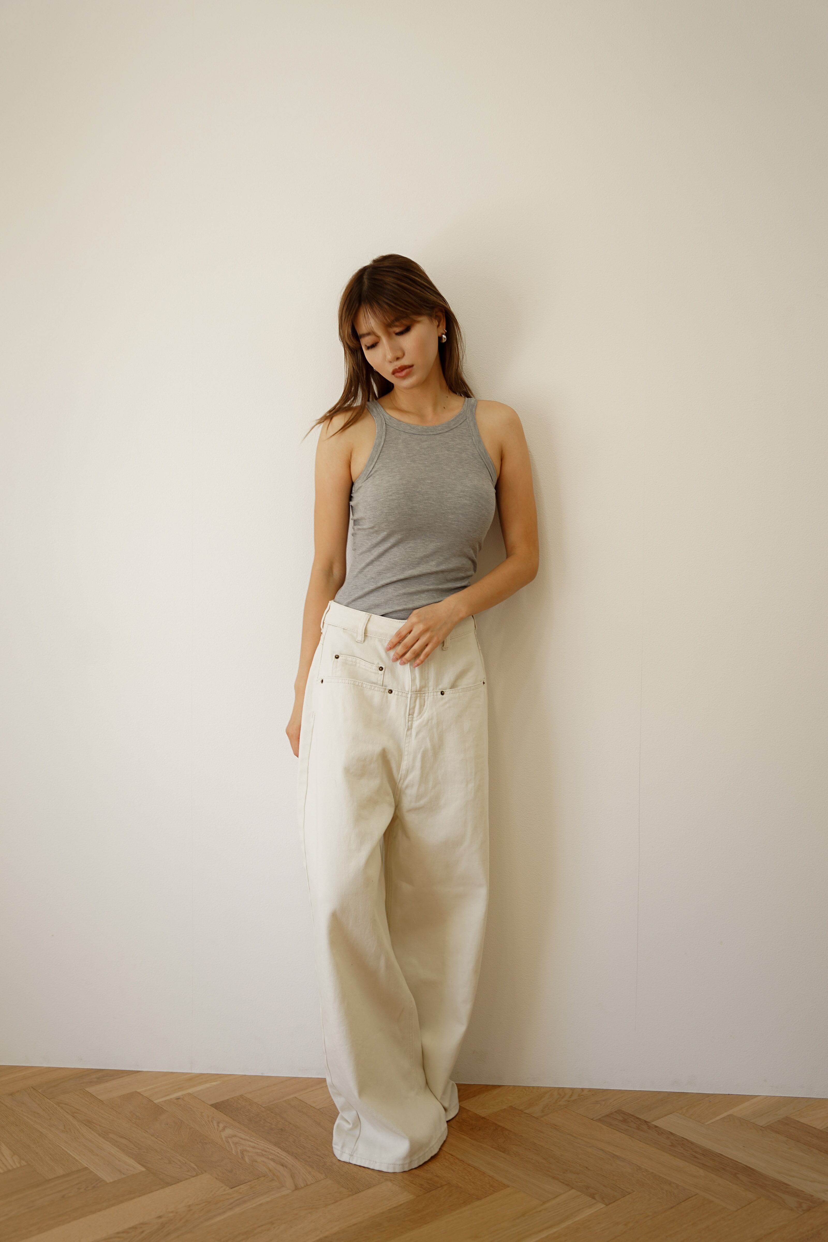 ・タイトなトップスと合わせると、ワイドなシルエットがよりこなれた着こなしに。