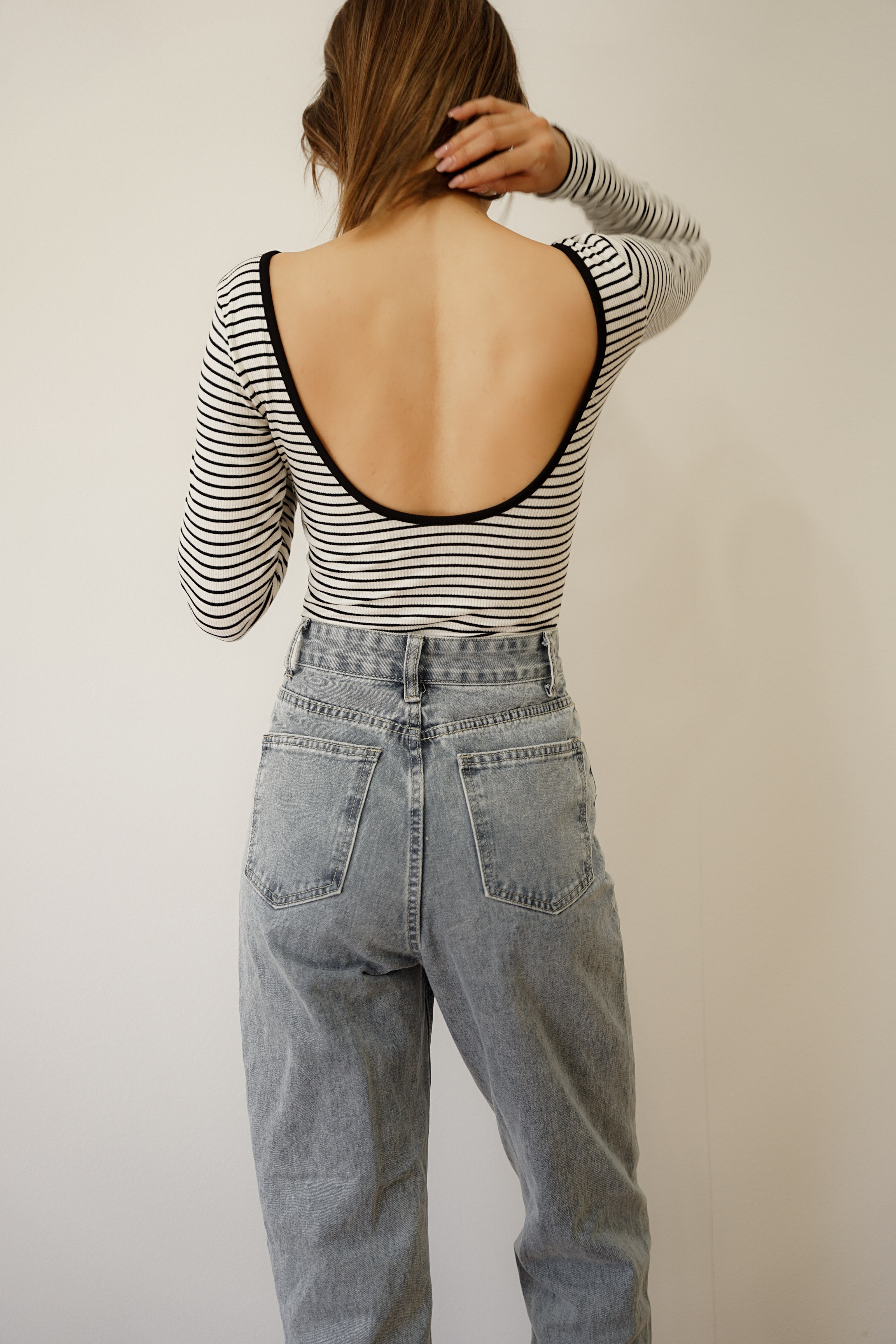 バックレス ボーダーボディスーツ