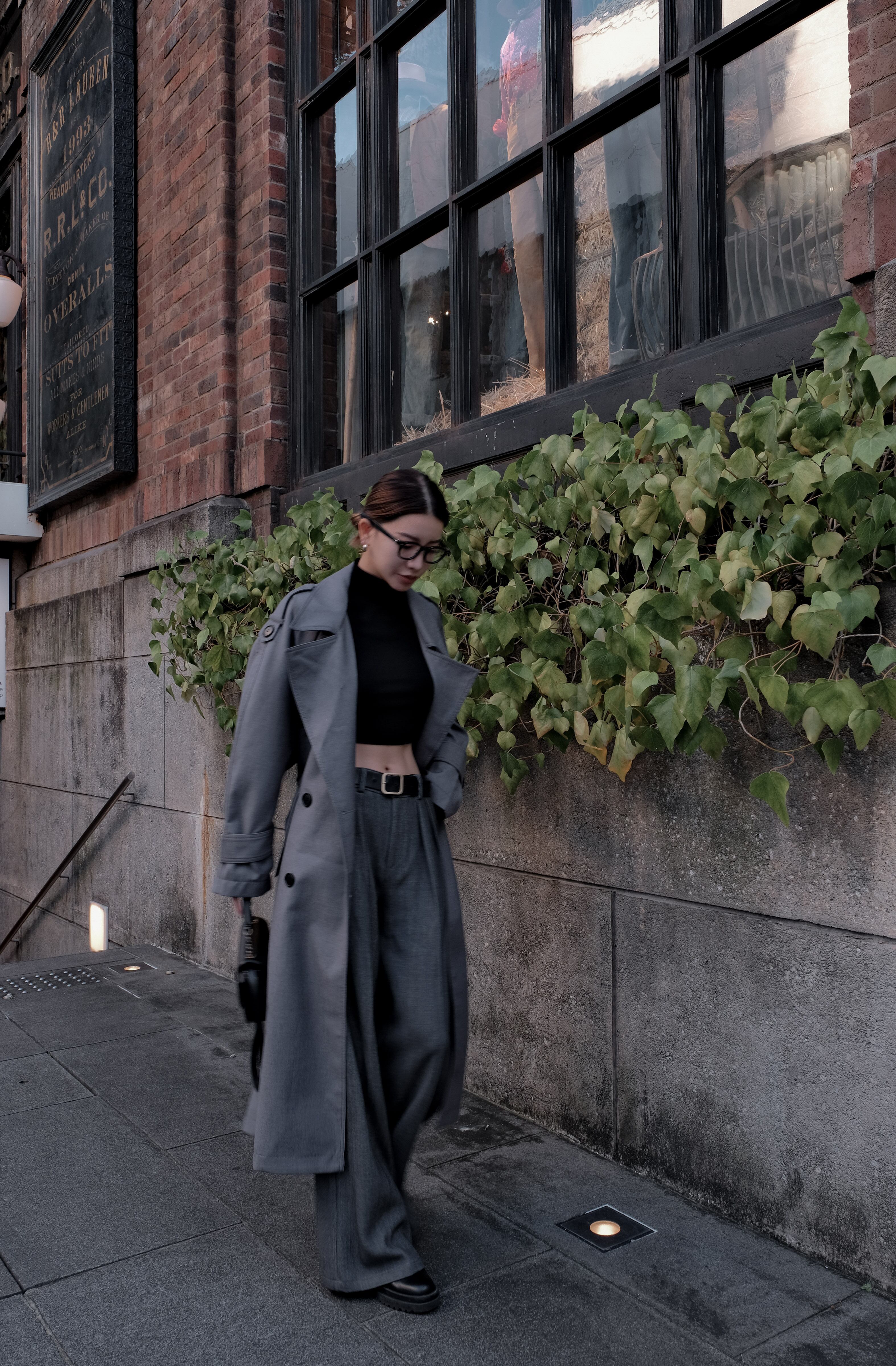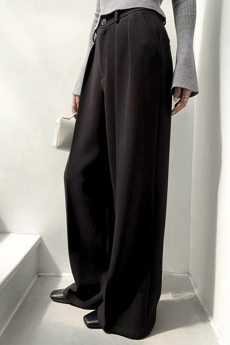 ・両サイドのウエストプリーツが立体感のあるレイヤードデザインを仕立てる。