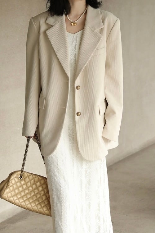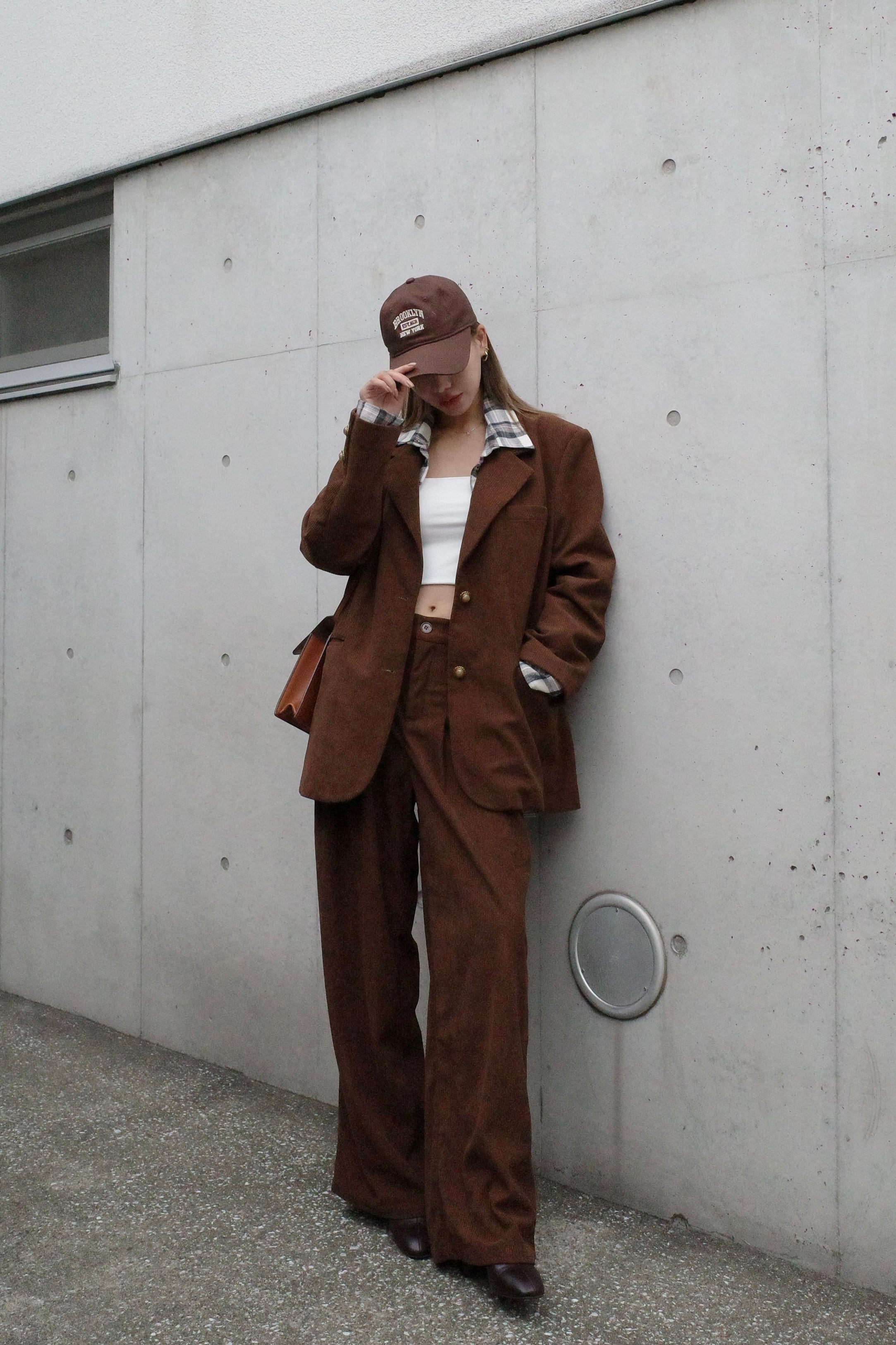 ・コーデュロイ素材がシーズンムードたっぷりなテーラードジャケット。