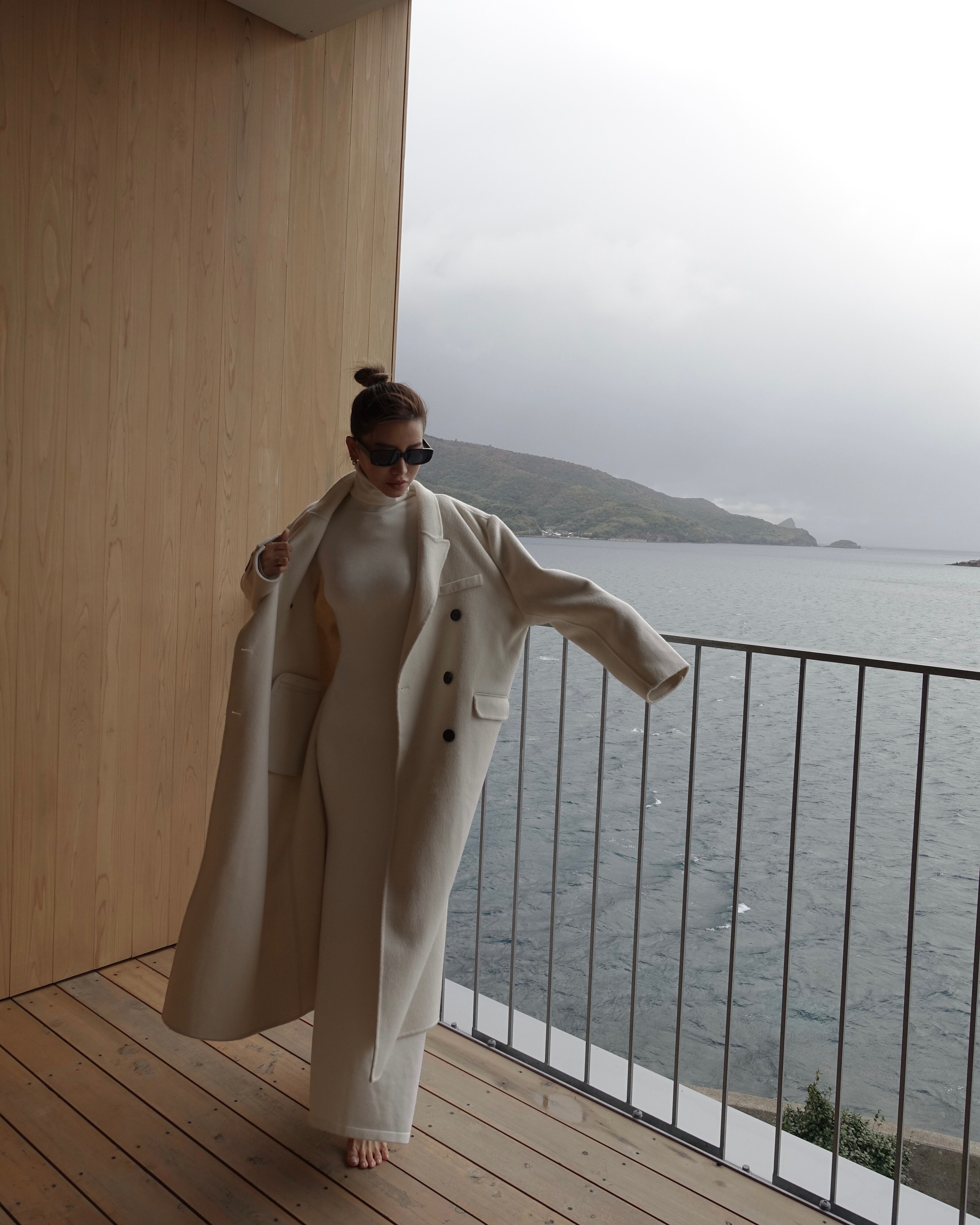 ・ワイドなシルエットとマキシマムなロング丈でシーズンスタイルをラフに羽織れる。