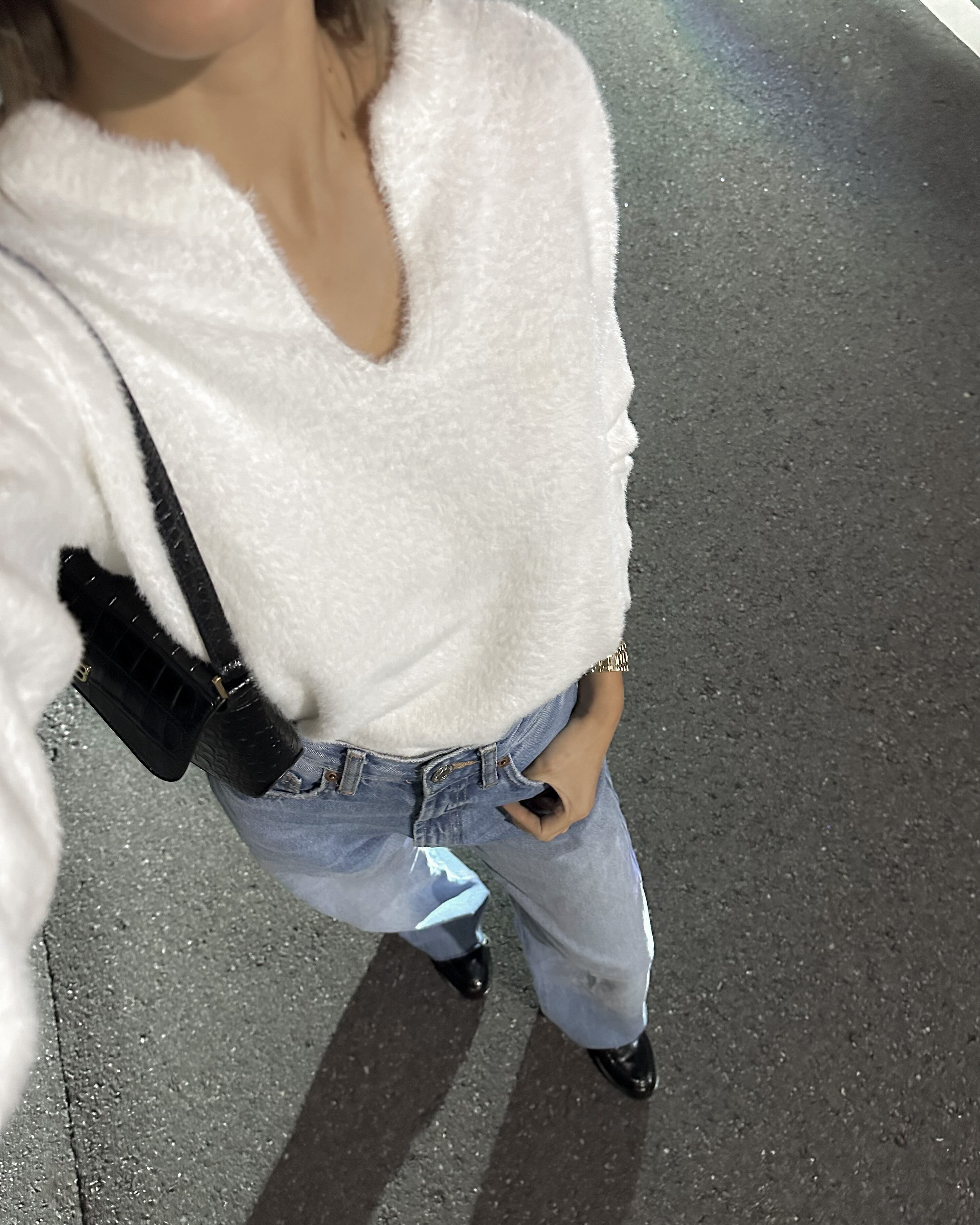・デニムやワイドパンツで大人カジュアルな着こなしやベージュ系のボトムスでワントーンコーデに。
