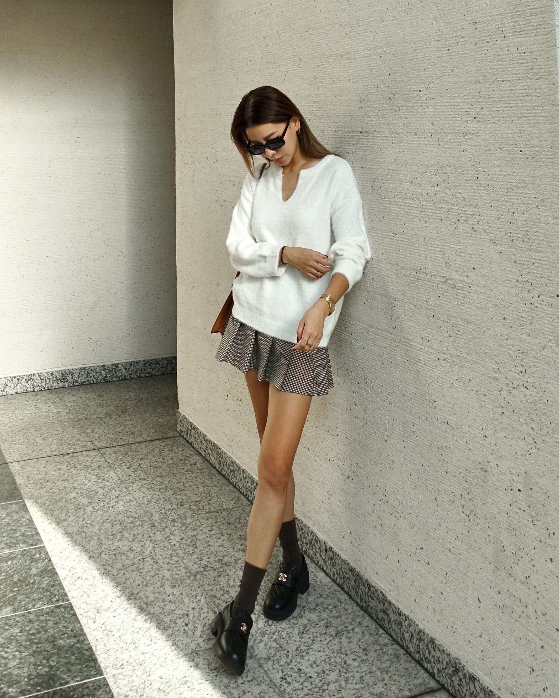 ・ロングなタイトスカートやきれいめスラックス、ローファーに合わせて品のあるスタイルにも。