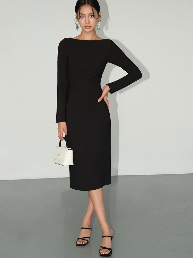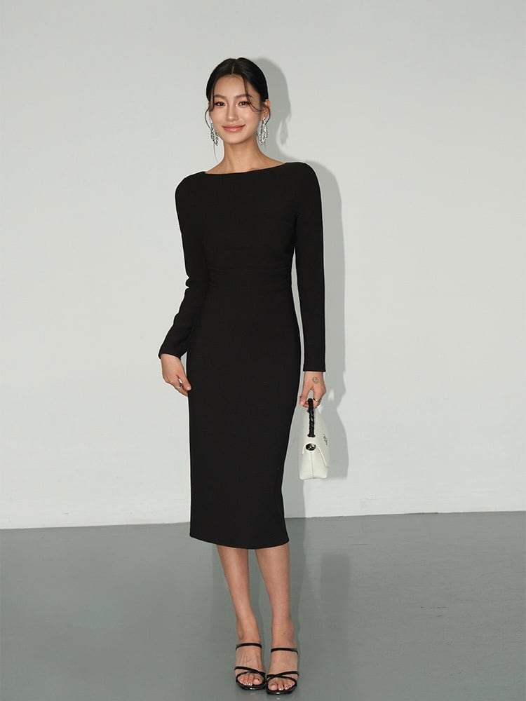 ボートネックと長袖がエレガントさを強調し、フォーマルからカジュアルまで幅広く活用できるデザインです。体に沿ったデザインが女性らしいラインを美しく引き立てます。ホワイトやブラックのクラシックカラーは、どんなアクセサリーや靴とも合わせやすく、オールシーズン使える万能なアイテムです。流行に左右されないミニマルなデザインは、長く愛用できる一着です。