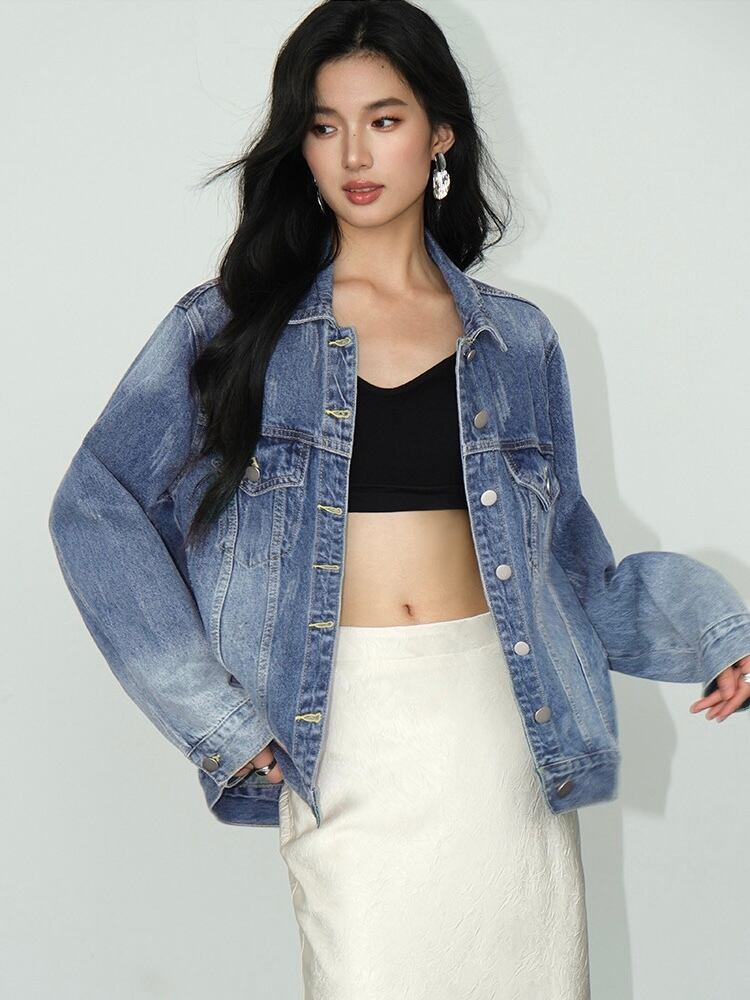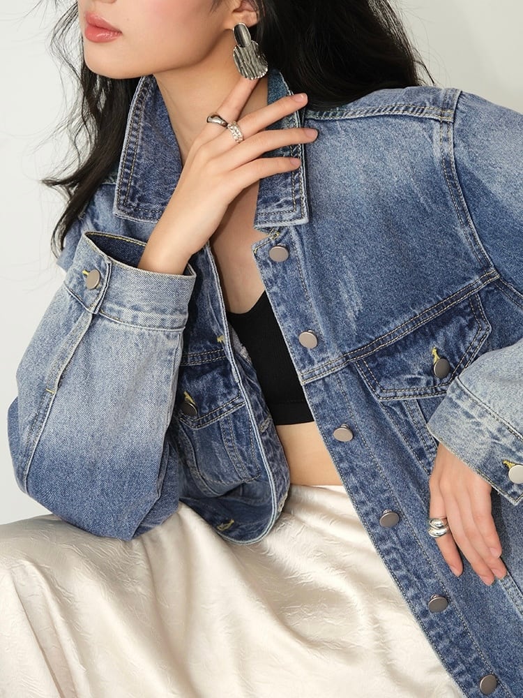 オーソドックスなデニムジャケットのデザインが、どんなスタイルにも合わせやすいです。ゆったりとしたシルエットがトレンド感をプラスし、レイヤードスタイルにも最適です。ユーズド感のあるウォッシュがデニムの質感を引き立て、カジュアルさとトレンド感を両立しています。高品質なデニム素材で、長く愛用できる耐久性が魅力です。