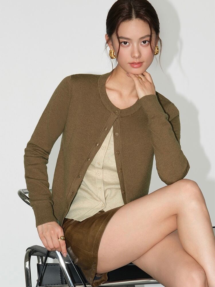 シンプルかつクラシックなデザインで、さまざまなコーディネートに合わせやすいです。季節の変わり目にも快適に使えるアイテムです。小さめのボタンがフェミニンさをプラスし、カジュアルでもドレッシーにもスタイリングできます。タンクトップやシャツとの相性が抜群で、多用途なデザインで色や素材感をスタイリッシュにまとめられています。