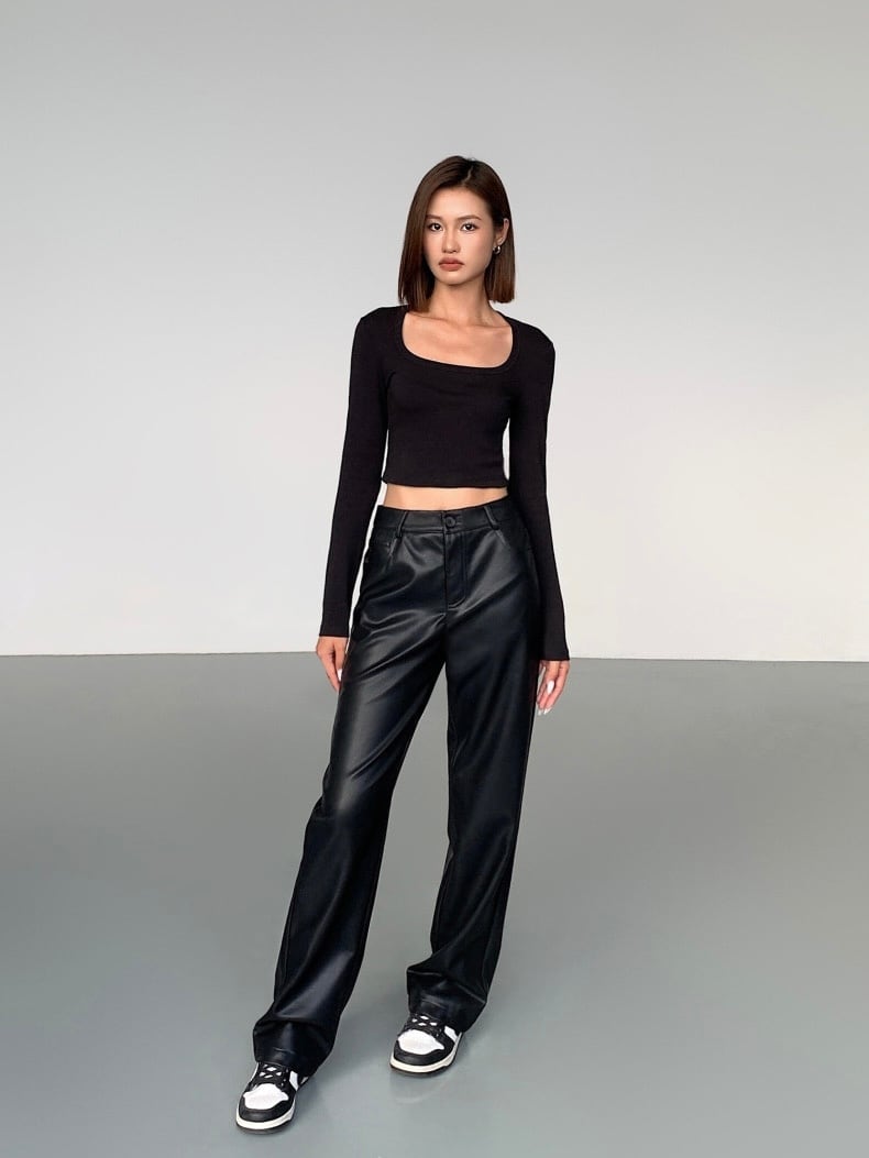 ゆったりとしたシルエットが、スタイリッシュでありながらリラックスした着心地を提供します。スニーカーと合わせたストリートスタイルから、ブーツやヒールと合わせたモードスタイルまで幅広く活用できます。クリーンなブラックカラーで、どんなトップスやアクセサリーとも相性抜群です。レザー特有の手入れの手間が少なく、日常使いにも適しています。レザーパンツが持つクールなイメージを、カジュアルスタイルにも落とし込んだデザインが魅力的です。