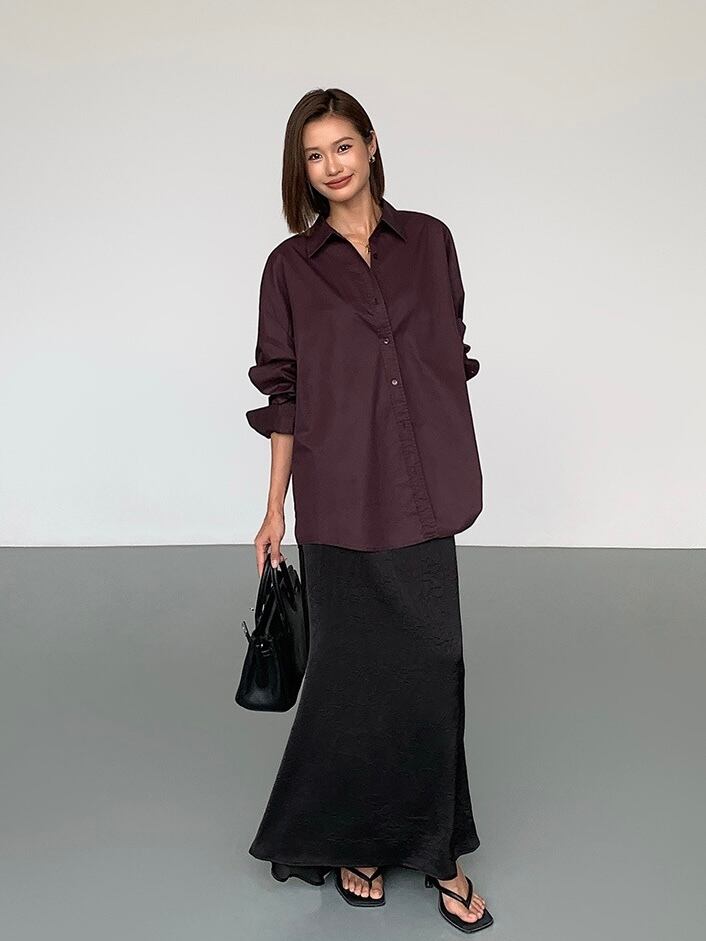 体型を問わず、リラックス感のあるゆったりとしたシルエットで、カジュアルからきれいめまで幅広くスタイリングが可能です。シンプルなデザインなので、アクセサリーや他のアイテムとのコーディネートがしやすいです。袖をまくるとカジュアルさが増し、着こなしに変化を持たせることができます。しっかりとした生地感で、季節を問わず着回しが可能で、ベーシックなカラーが多いため、どんなアイテムとも相性が良いです。