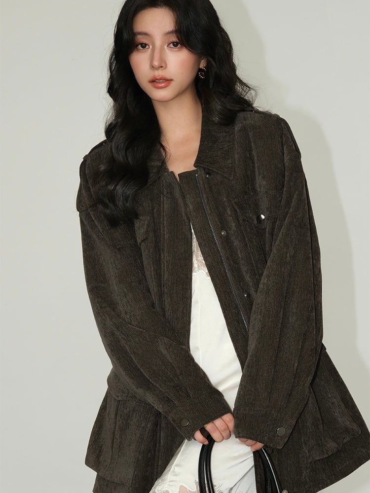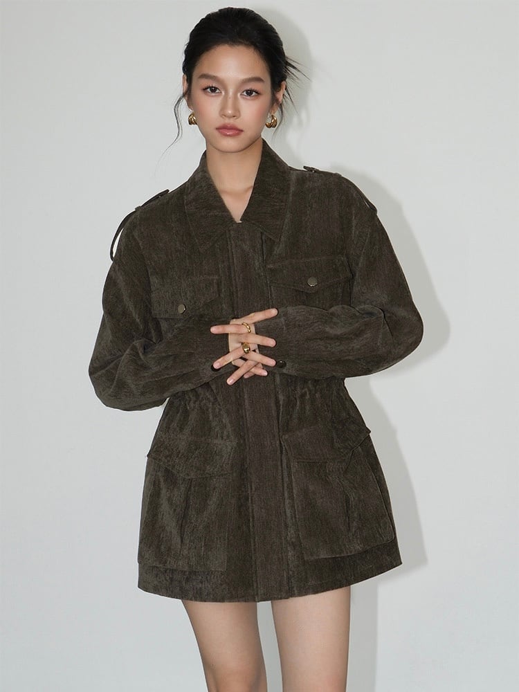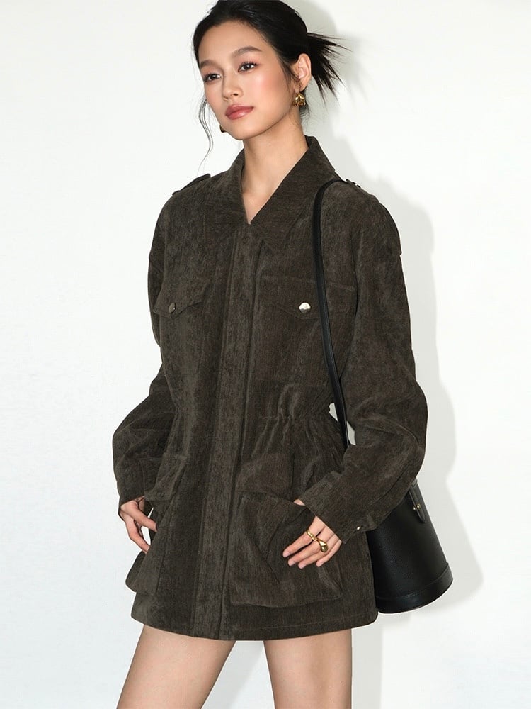 シンプルながらも存在感のあるデザインで、ミリタリースタイルが好きな方におすすめです。カジュアルコーデに取り入れるだけで、クールな雰囲気を演出できます。オーバーサイズ感があるため、リラックスした着心地とトレンド感を両立しています。さまざまなスタイリングに合わせやすいです。前面に大きめのポケットが付いており、デザイン性だけでなく、収納力も抜群です。小物を持ち歩く時にも便利です。落ち着いた質感のコーデュロイ素材が、秋冬の季節にぴったりの暖かみを演出します。上品で長持ちする素材が特徴です。