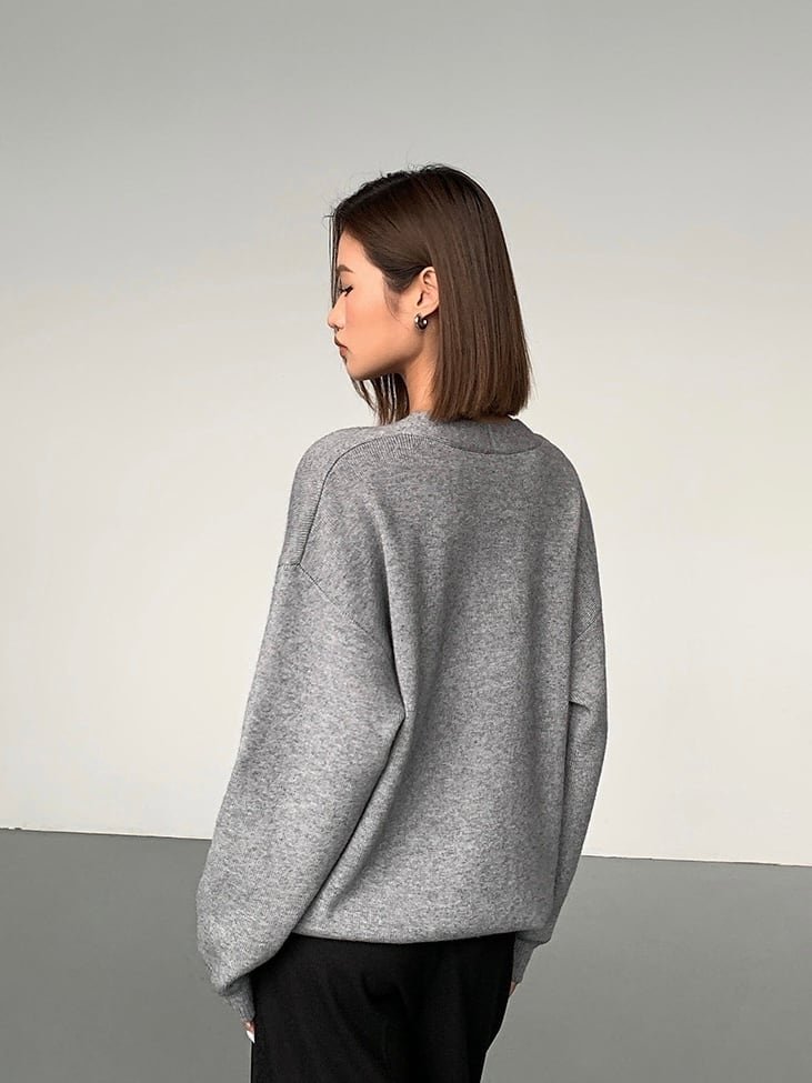 どんなスタイルにも合わせやすく、デイリー使いにもぴったりのベーシックなデザインです。オーバーサイズのシルエットがリラックスした着心地を提供し、体型カバーも叶います。秋冬にぴったりのニット素材で、暖かさを保ちながらもスタイリッシュに着こなせます。グレー、ブルー、ブラックとさまざまなコーデに使えるシックなカラー展開。深めのVネックが顔周りをすっきりと見せ、女性らしい印象をプラスします。軽やかな素材感が、長時間着用しても疲れにくく、オフィスからカジュアルまで活躍します。シャツやタートルネックと重ね着することで、秋冬のレイヤードコーデにも対応できます。