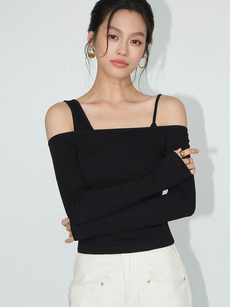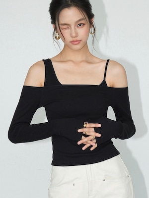 ショルダー部分のダブルストラップとオフショルダーがモダンで洗練された印象を与えます。カジュアルにもフォーマルにも対応できるデザインで、着回し力が高いです。スリムフィットのシルエットで、ボディラインを美しく見せる効果があります。さらにオフショルダーのデザインが肩周りを華奢に見せ、女性らしさを引き立てます。柔らかな素材が、肌に優しくフィットし、快適な着心地を提供します。春や秋の気候にぴったりのアイテムです。パンツやスカートなど、さまざまなボトムスと相性が良く、オフィスからデートまで多様なシーンで活躍します。