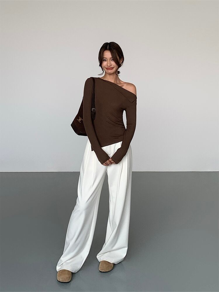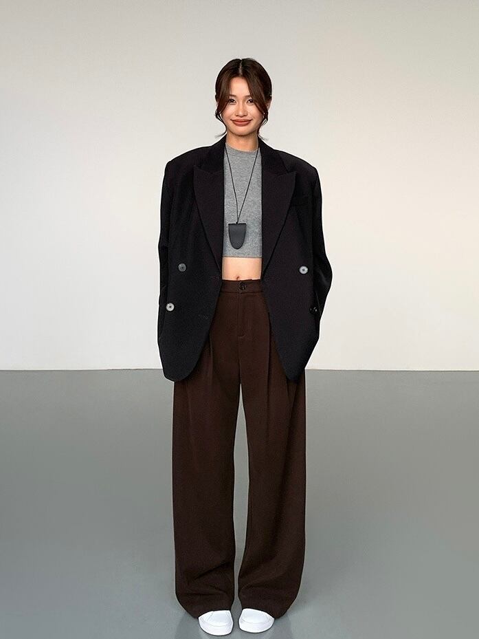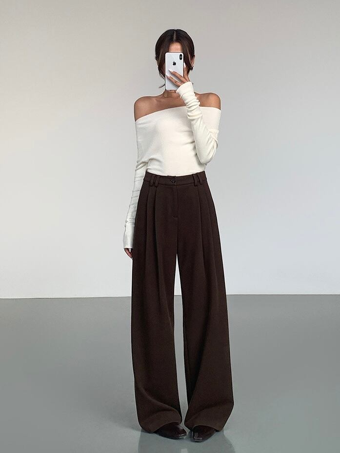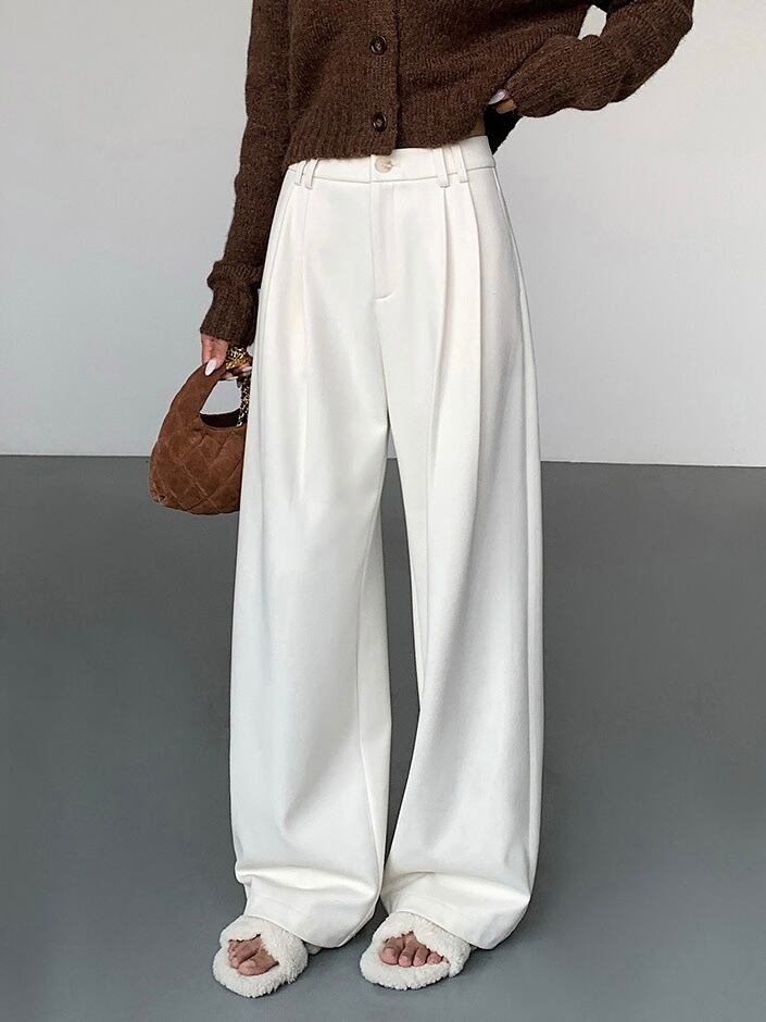 フロントにタックが入っており、リラックスしたシルエットがエレガントな印象を与えます。クラシックでありながらもトレンドを意識したデザインで、幅広い年齢層におすすめです。ワイドなシルエットと柔らかな素材が特徴で、動きやすく快適な履き心地です。長時間の着用でも疲れにくく、普段使いにも最適です。高いウエスト位置とフルレングスのスタイルが、脚を長く見せる効果があります。ブーツやヒールと合わせると、よりスタイリッシュに見せることができます。シンプルなデザインで、トップスを選ばずに合わせられる万能アイテムです。カジュアルにもフォーマルにも使え、さまざまなシーンで活躍します。