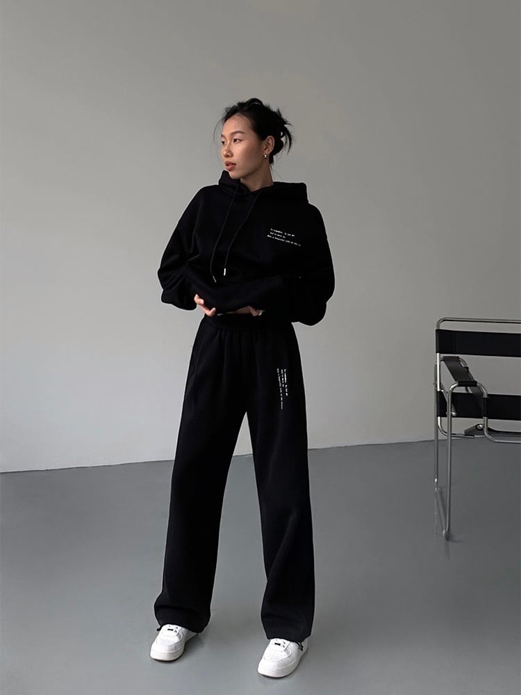ゆったりとしたシルエットが、リラックスした着心地を提供し、動きやすさも抜群です。シンプルでミニマルなデザインなので、どんなトップスにも合わせやすく、デイリースタイルに最適です。男女問わず着用できるデザインで、ペアルックやシェアにもぴったりです。程よい厚みの素材で、秋冬はもちろん春先にも快適に着られます。グレーやブラック、ホワイトなど、ベーシックなカラーが揃っているので、コーディネートに合わせて選べます。カジュアルでありながらスタイリッシュな雰囲気があり、日常使いからお出かけまで幅広く活用できるアイテムです。