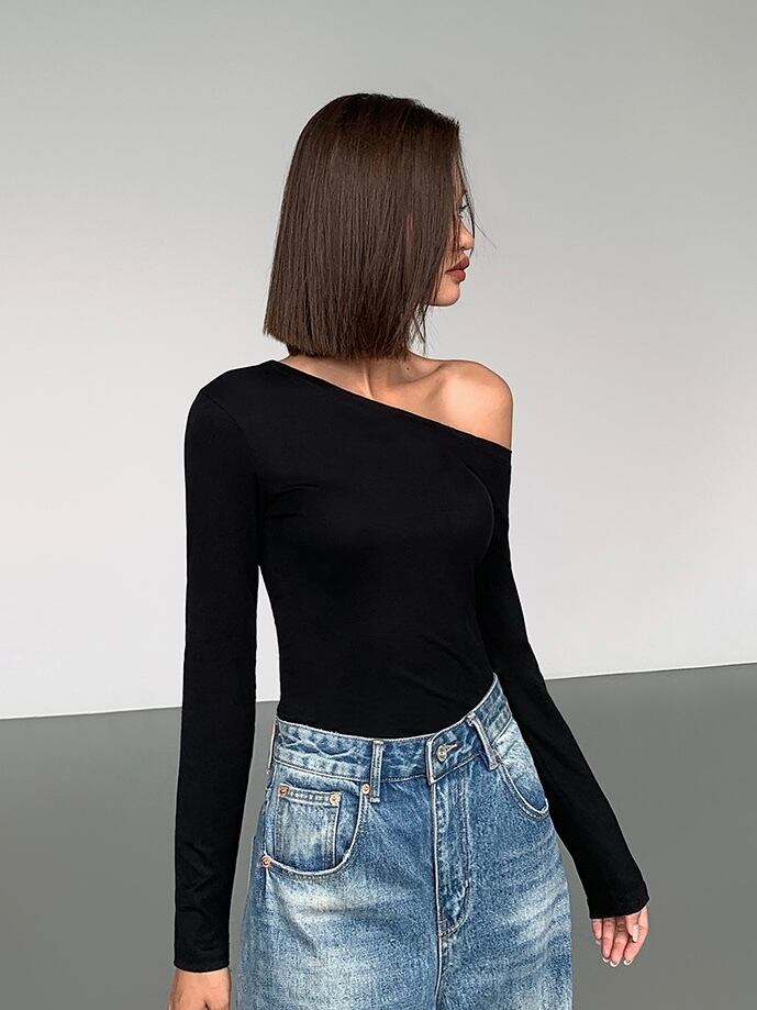 アシンメトリーのデザインで洗練された雰囲気を演出し、肩の露出がフェミニンな印象をプラスします。シンプルながらもモダンなスリムシルエットで、カジュアルにもエレガントなコーディネートにも合わせやすいです。身体に心地よくフィットするので着心地抜群です。単色のシンプルなカラーリングで、パンツやスカートといったアイテムと組み合わせがしやすいです。デートやオフィスカジュアルなど、シーンを選ばずに使える万能アイテムです。